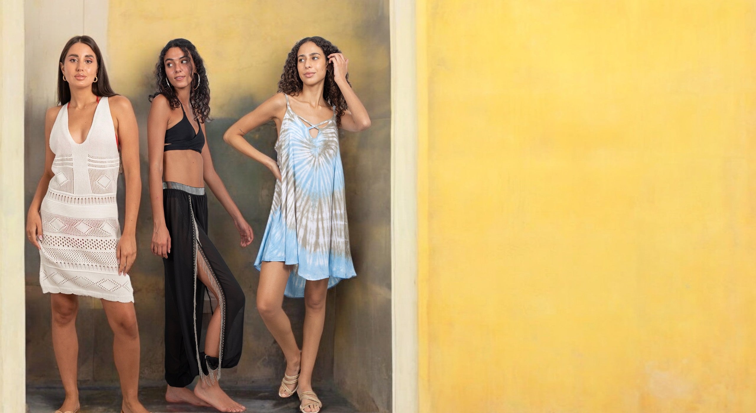 Flowing silhouettes, airy fabrics, and signature prints. Crafted for graceful days under the sun.