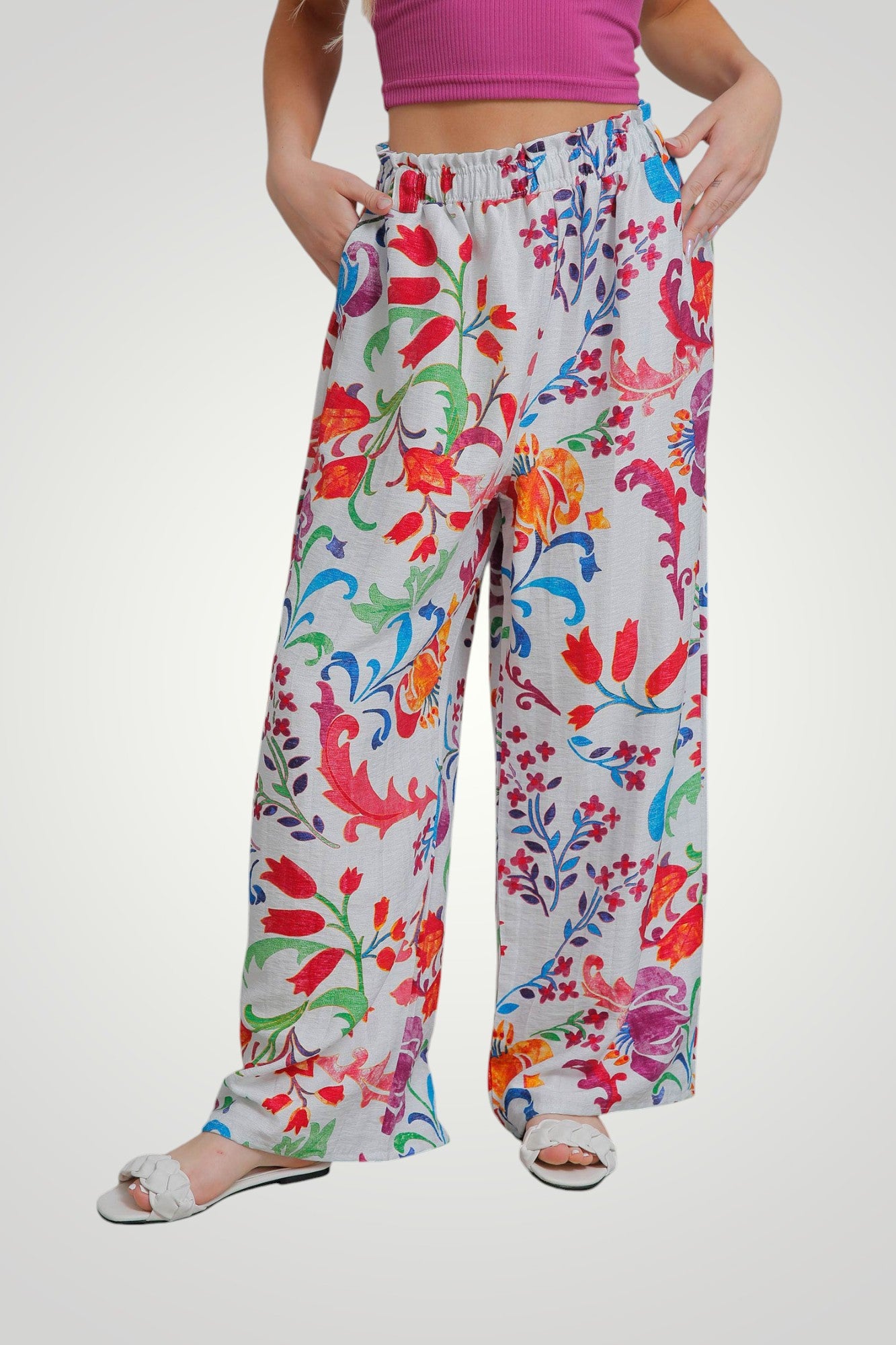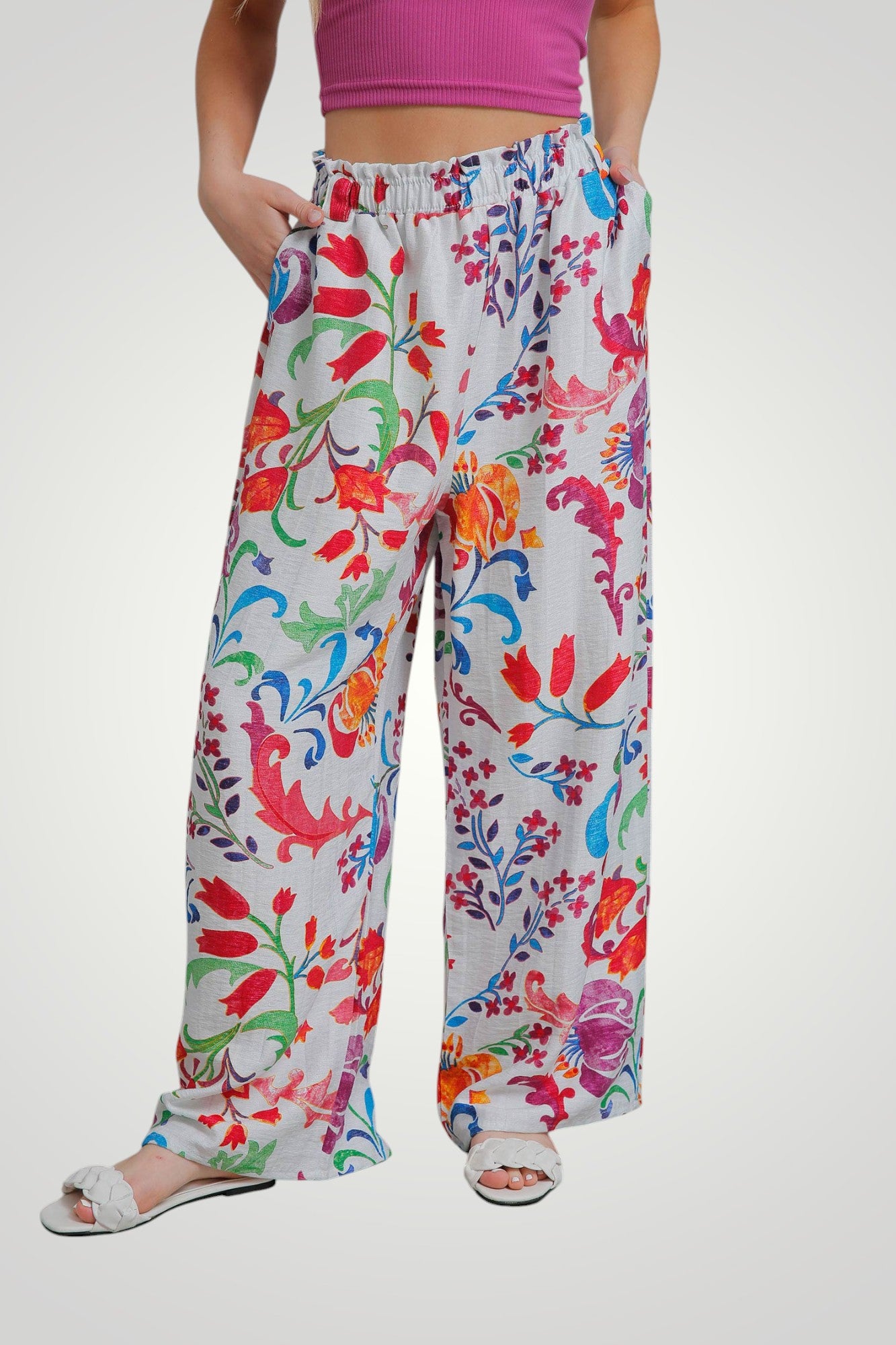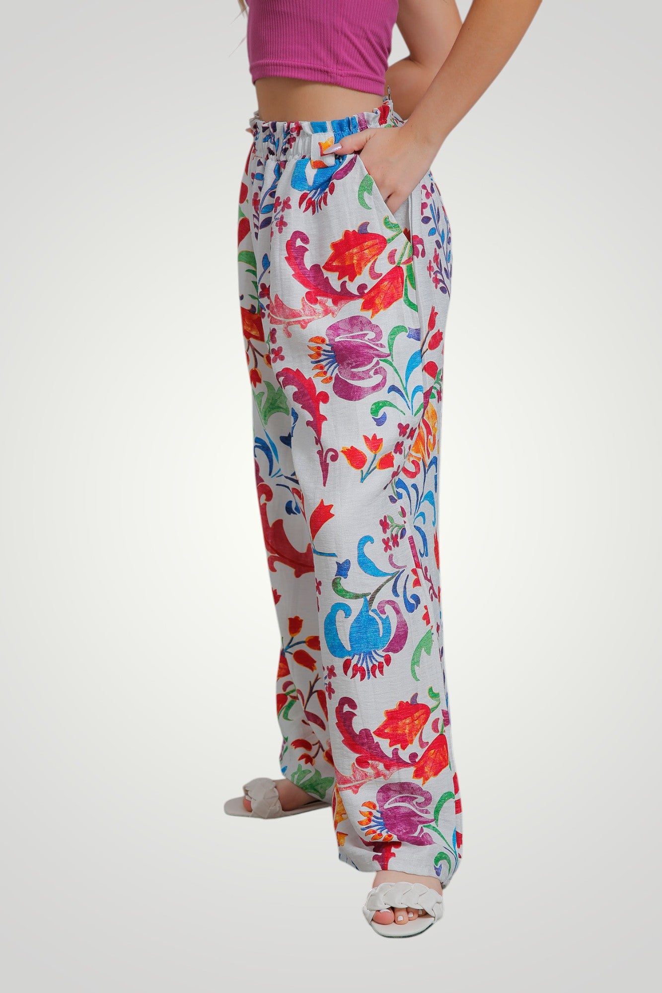 بنطلون بقصّة مستقيمة وخصر مرن وجيوب