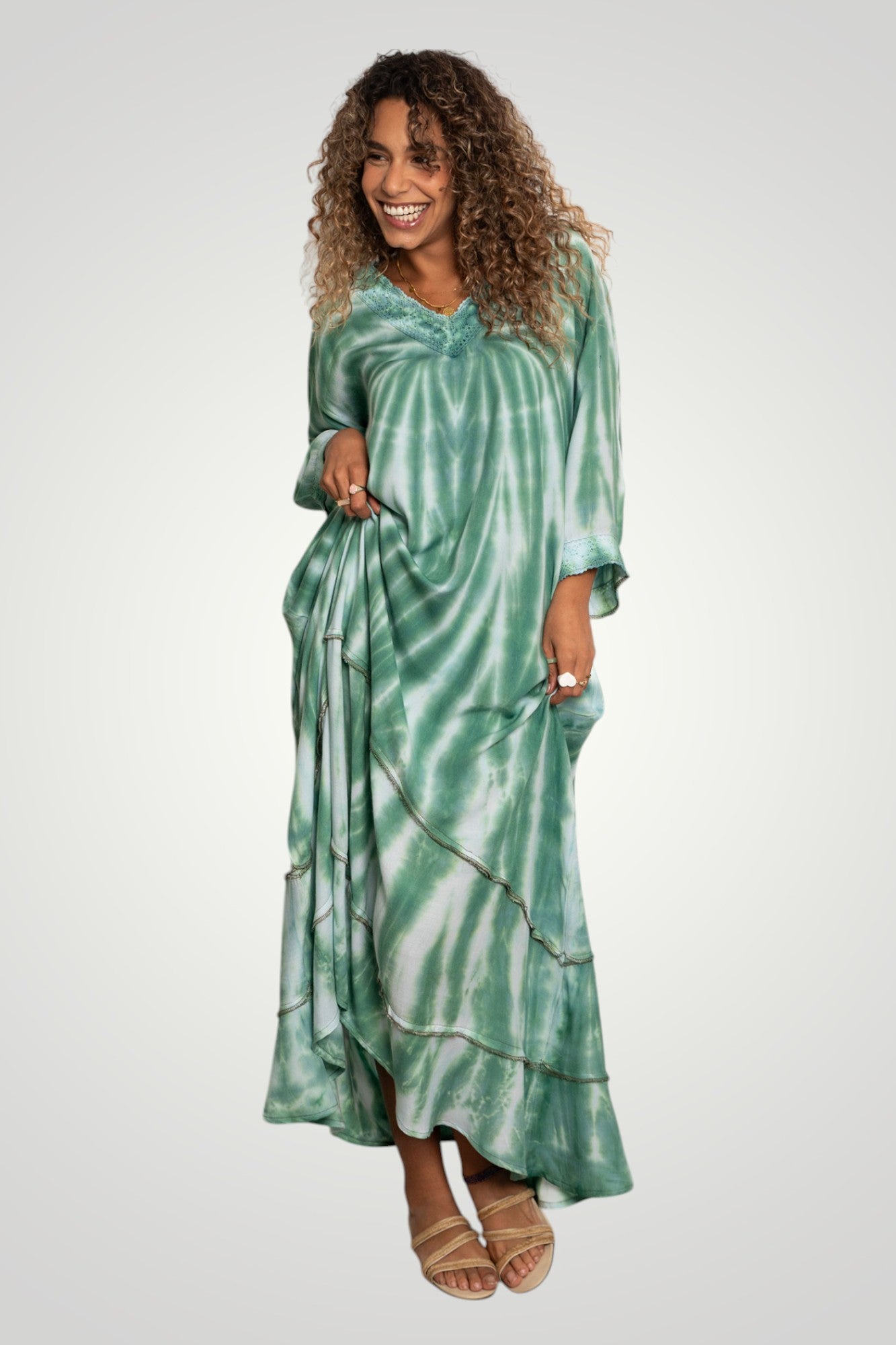 فستان ماكسي بأكمام 3/4 وإكسسوار