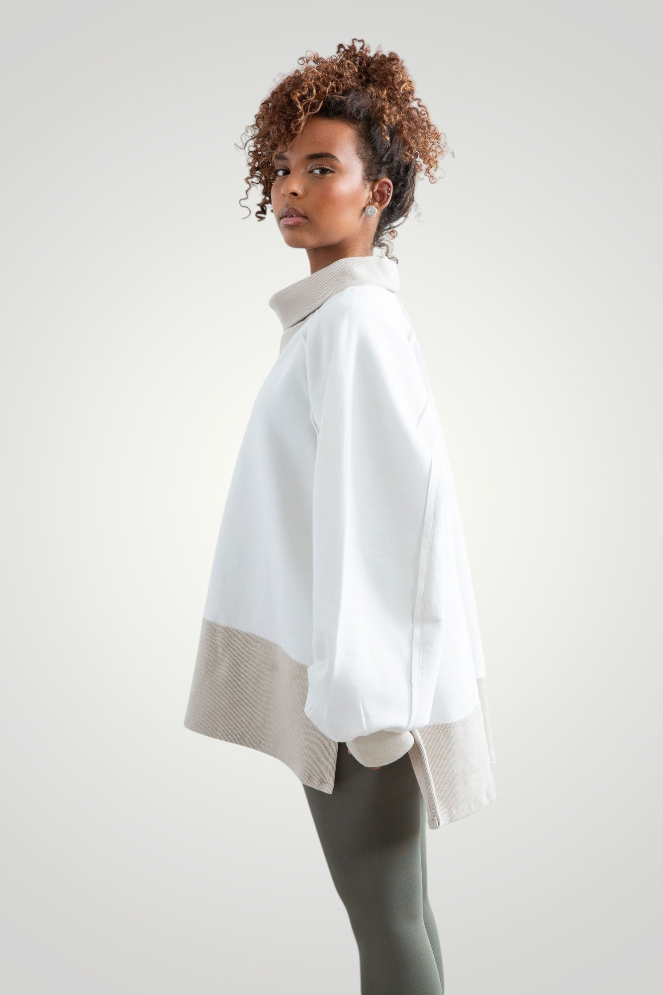 الوصف: سويت شيرت قابل للطي بألوان عالية وفتحات ضلعية من القطن