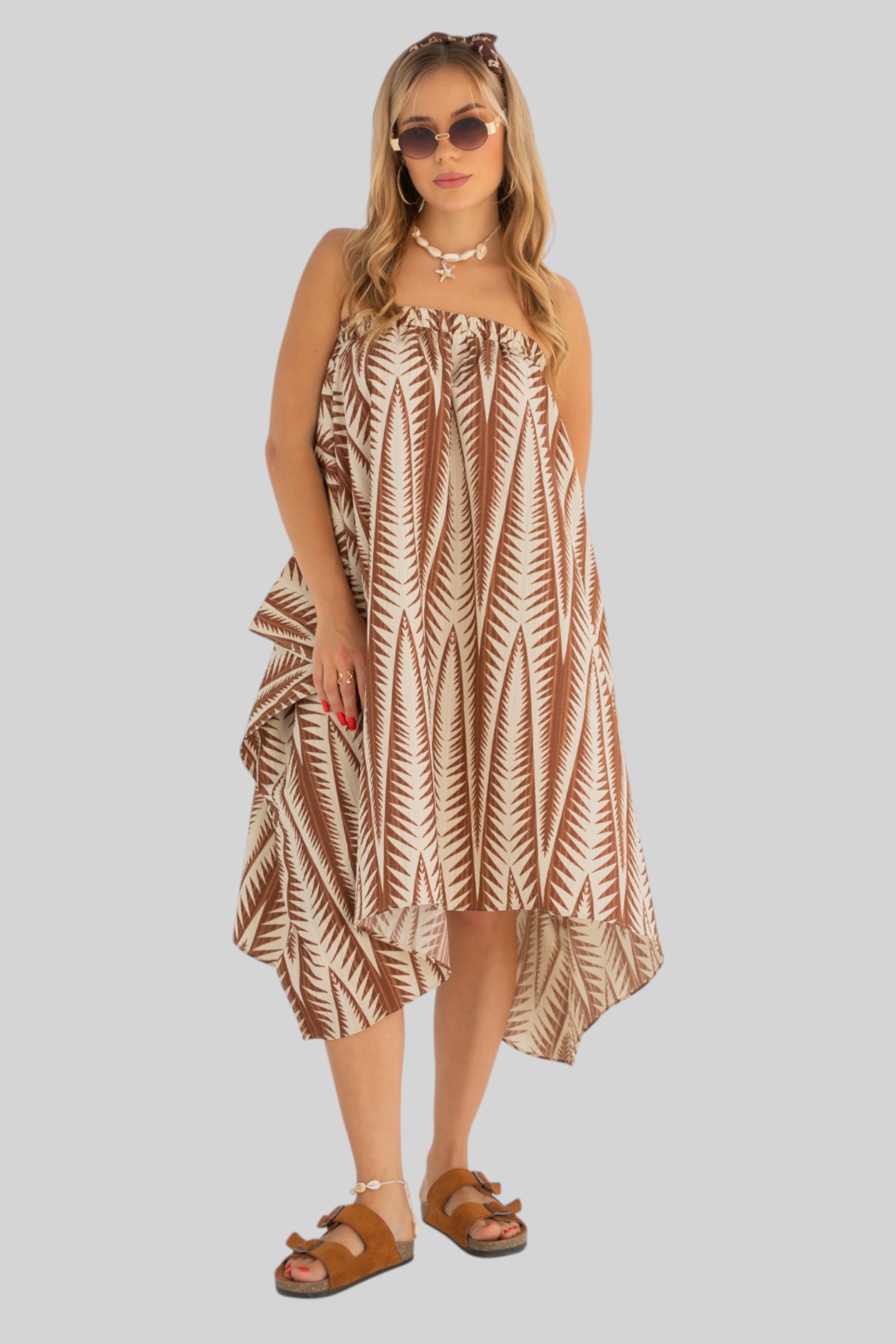 تنورة/فستان غير متماثل مع خصر مطاطي