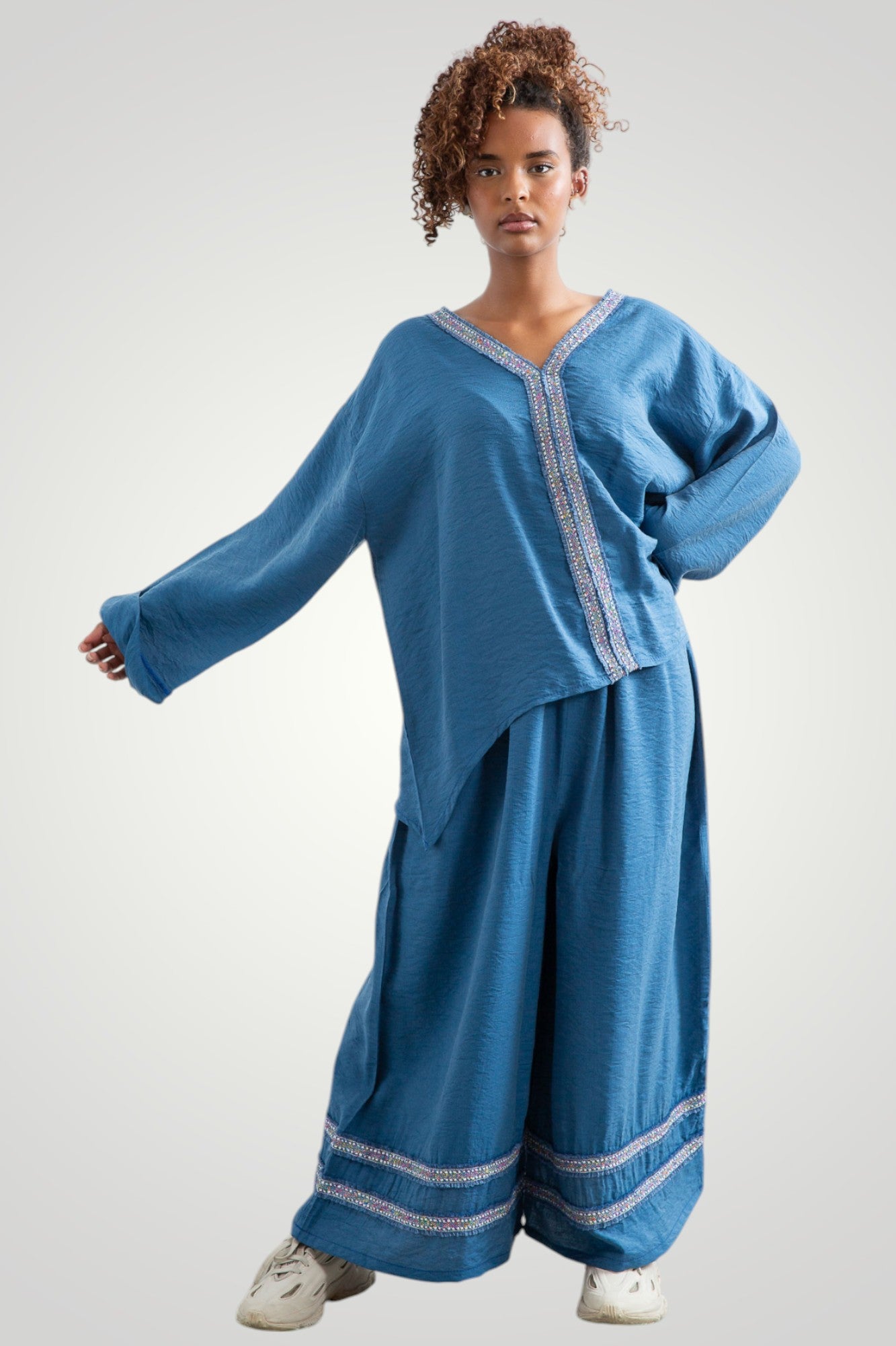 set with accessory, top and pants with elastic waist