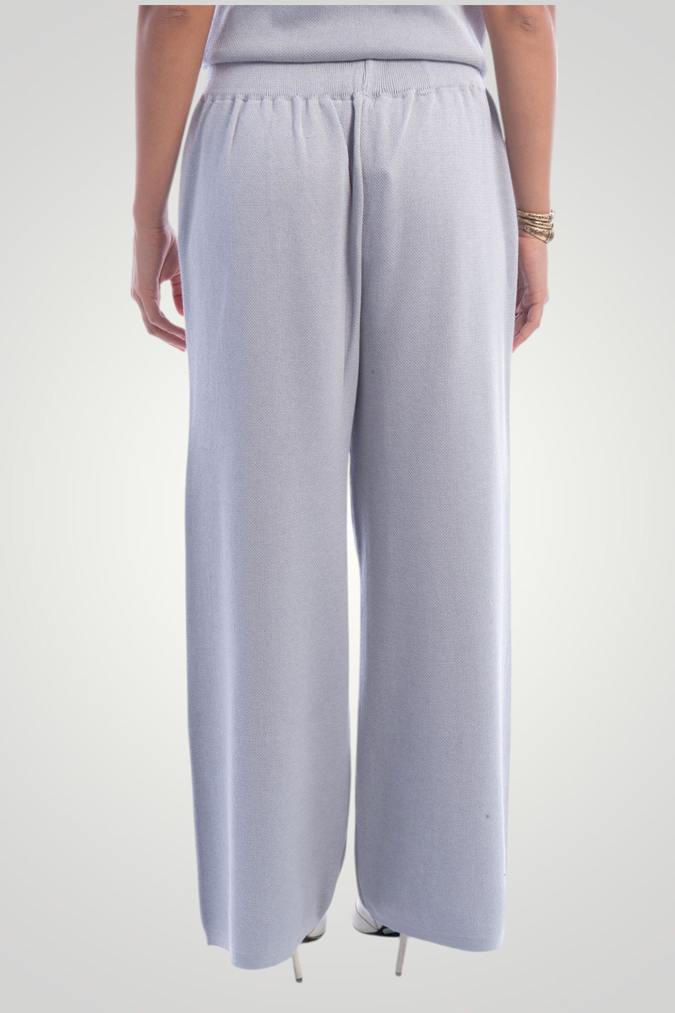 Knit pants with elastic waist, can be coupled with its matching top and jacket to create a stylish winter set