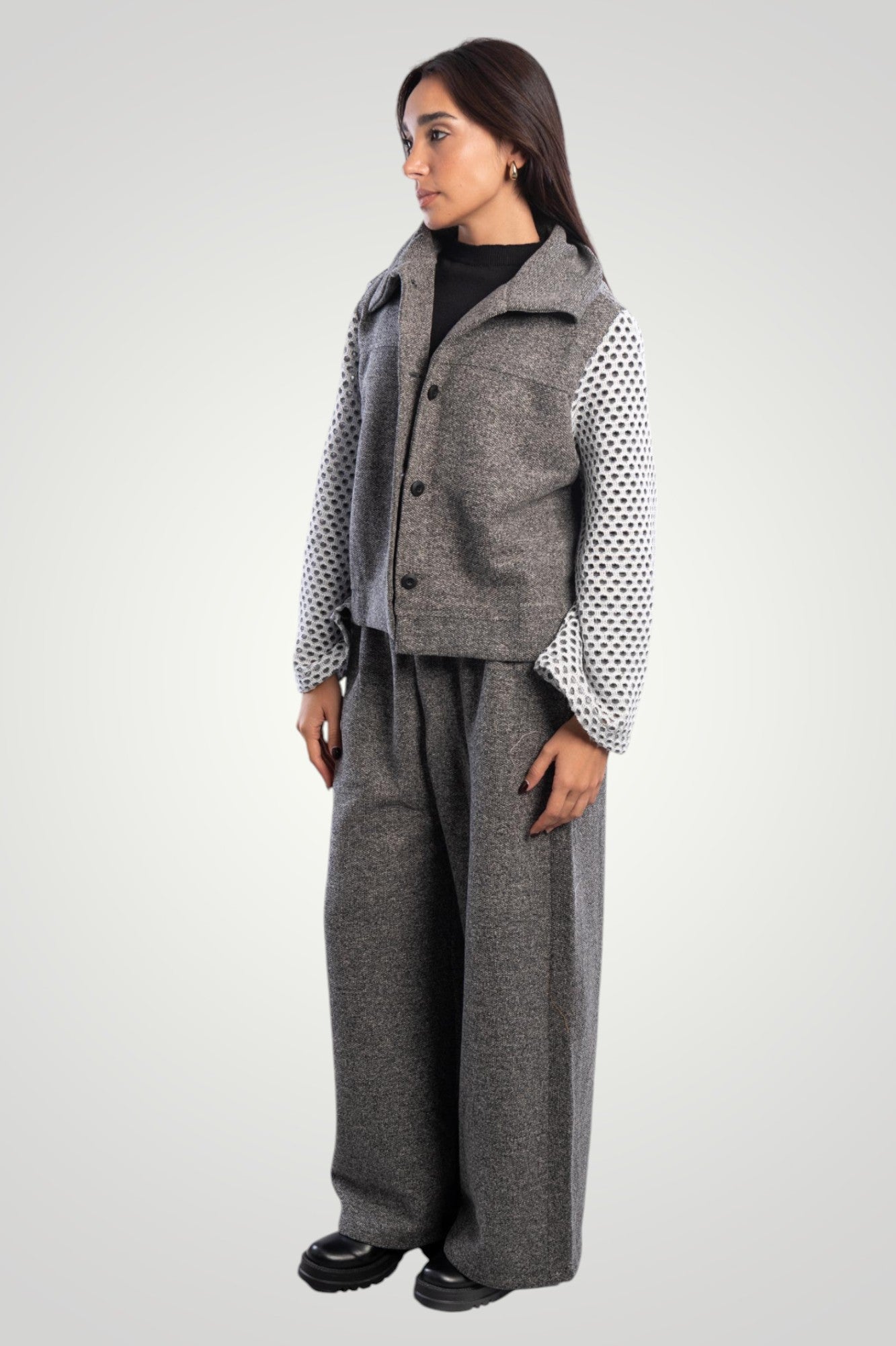Wide legged winter pants with elastic waist, can be combined with its matching jacket to give you a sleek winter set