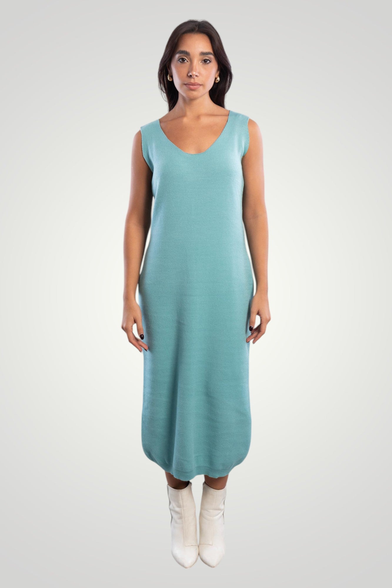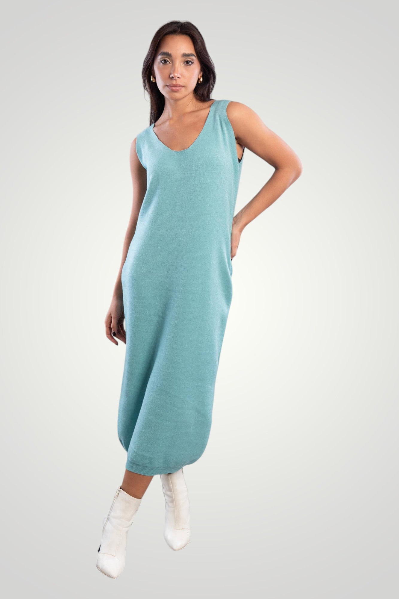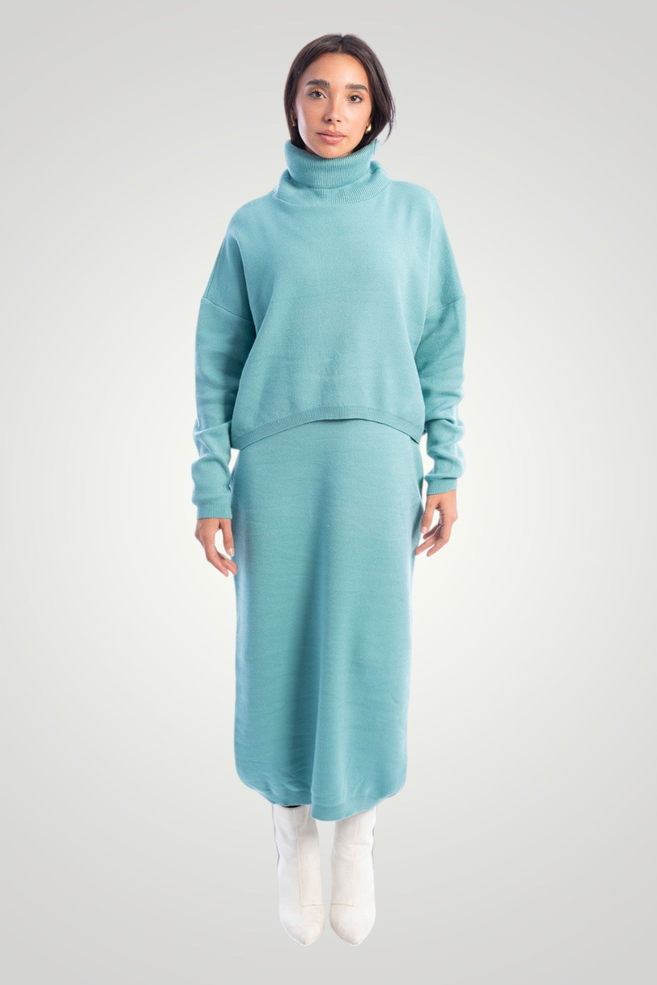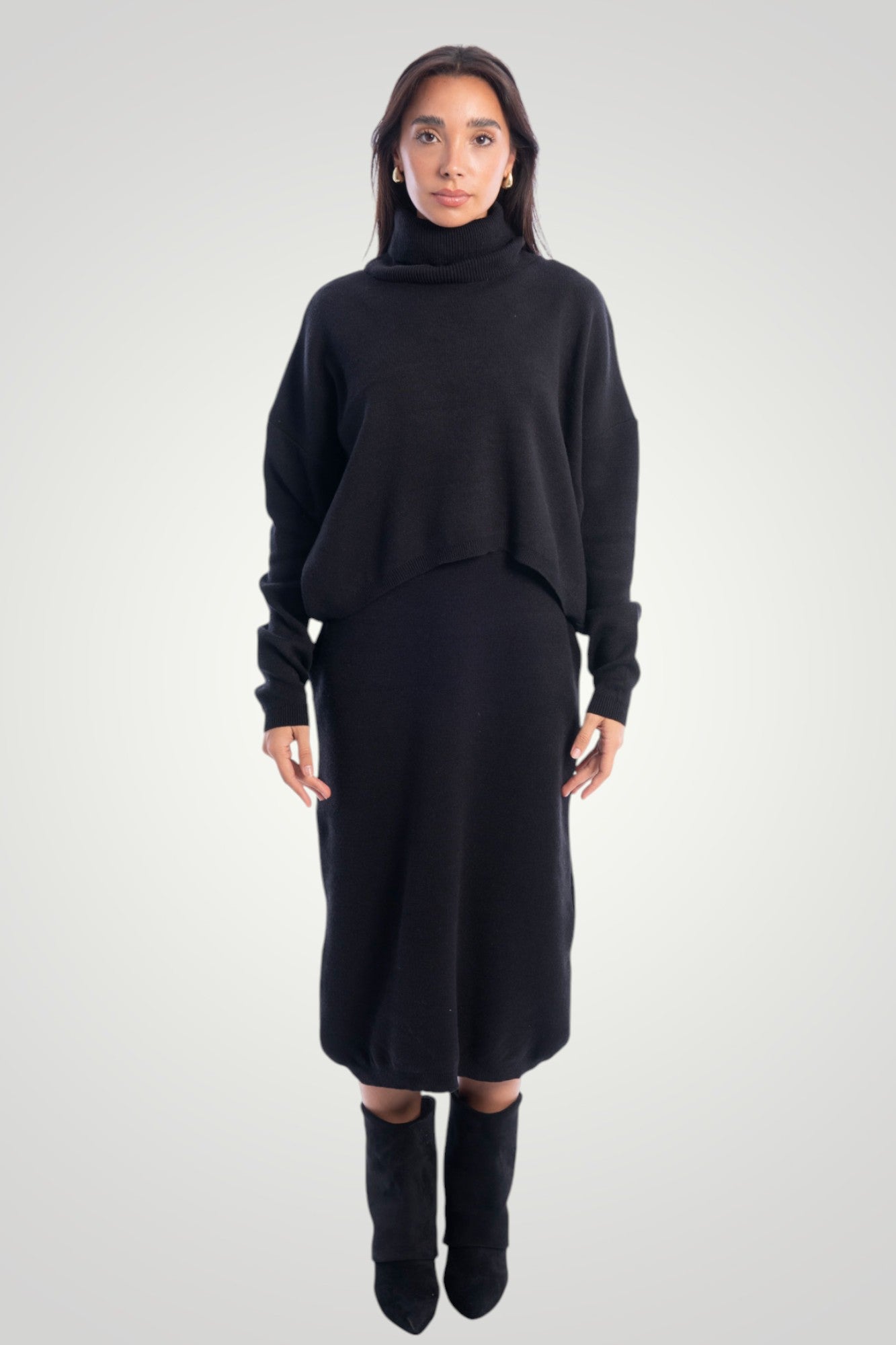 A comfortable slip on knit dress, can be coupled with its matching jumper