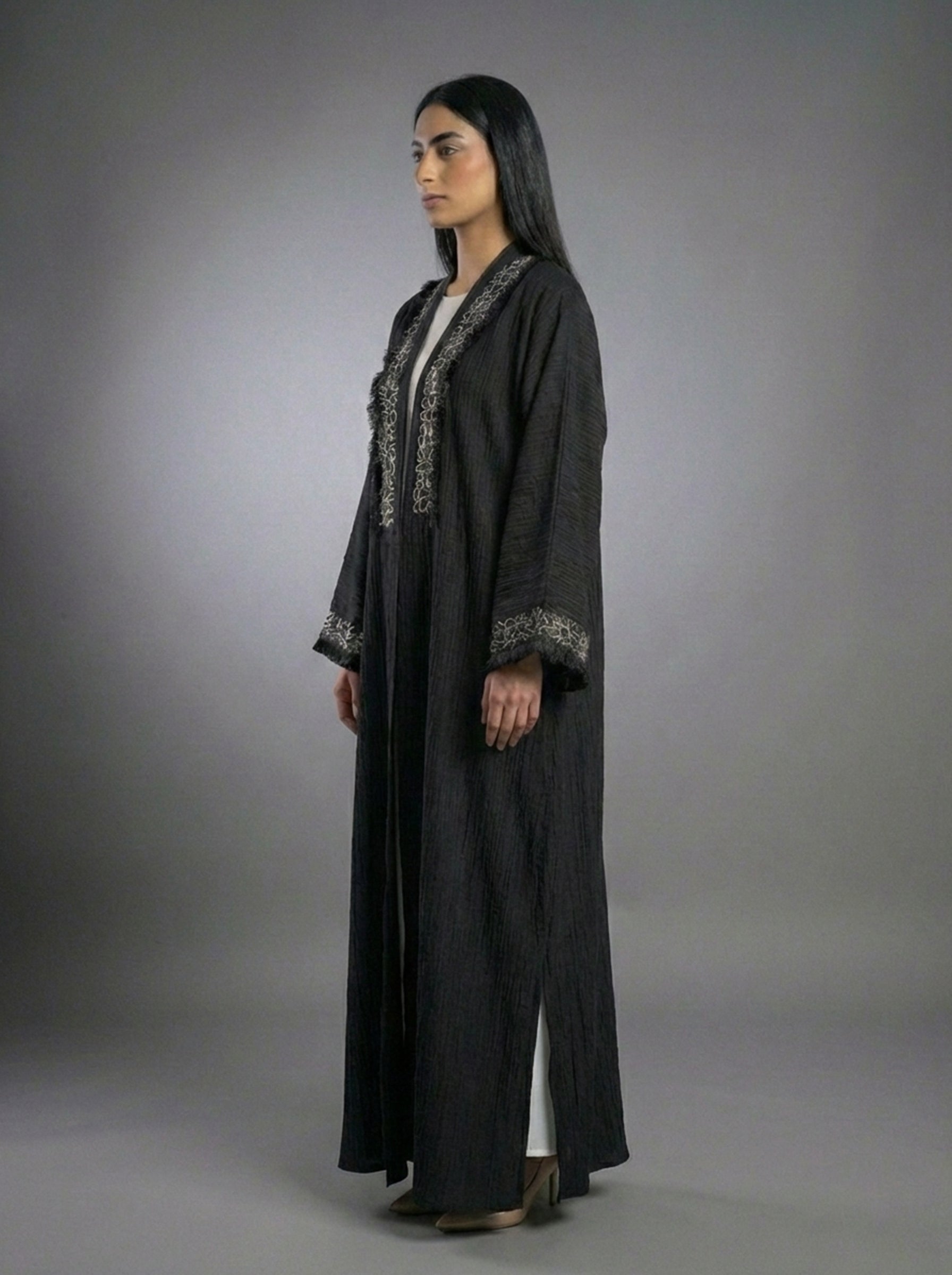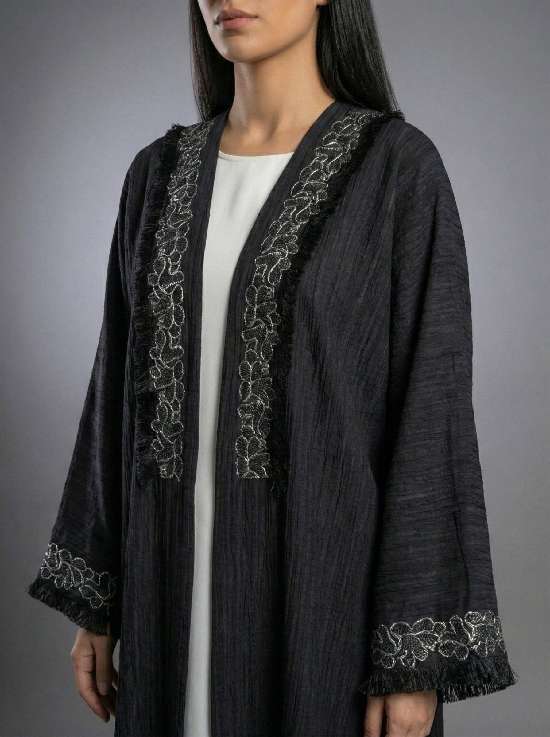 • Elegant wide sleeves with embroidered cuffs for added sophistication