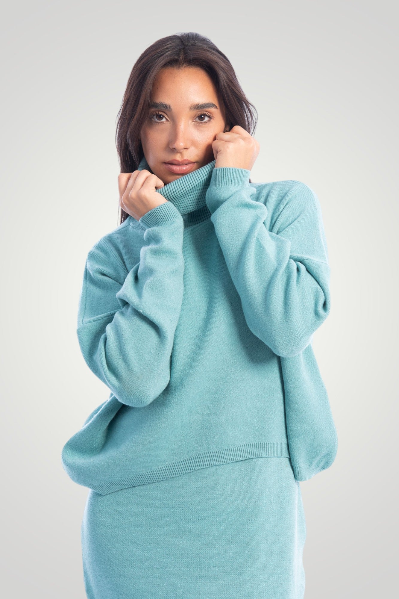 knit jumper with color, can be worn together with its matching dress to create a stylish winter set