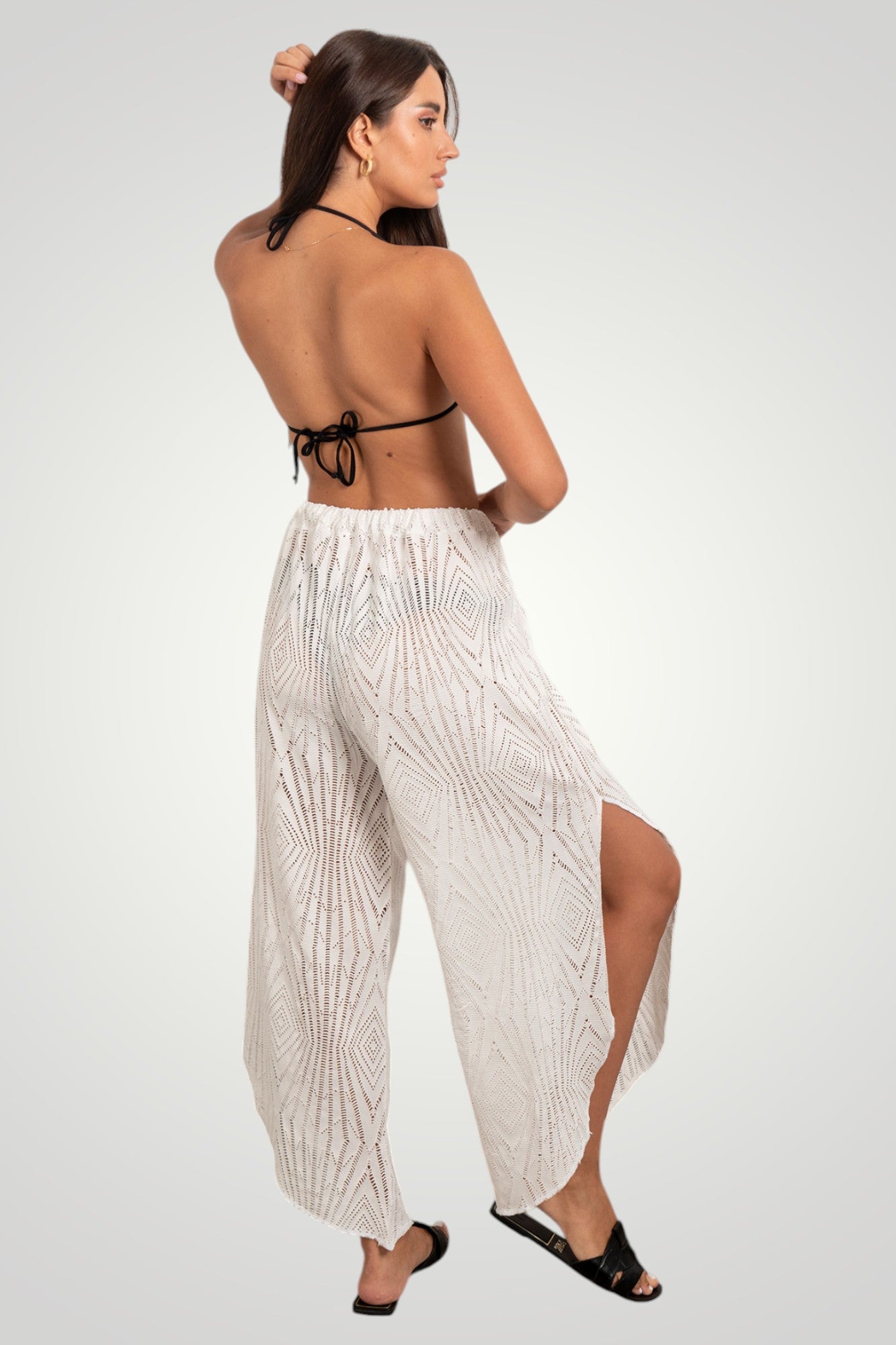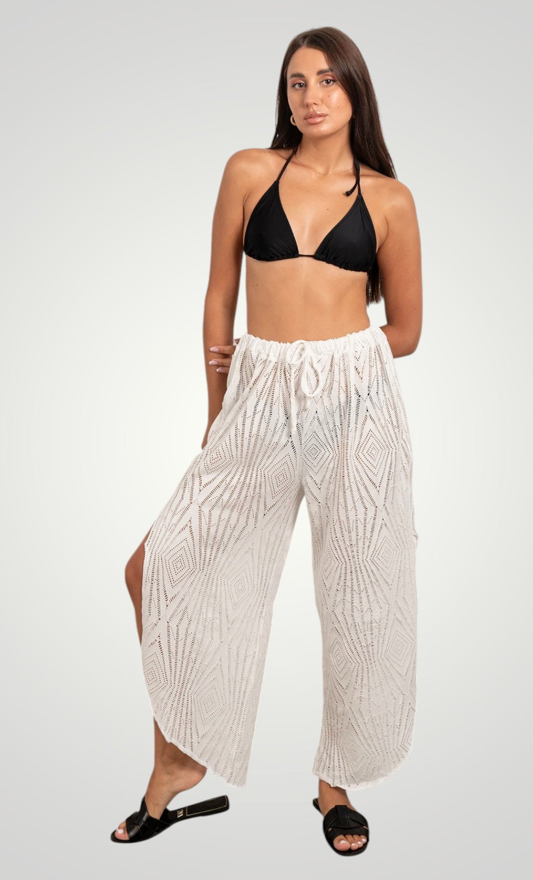 net beach pants with side slit and elastic waist